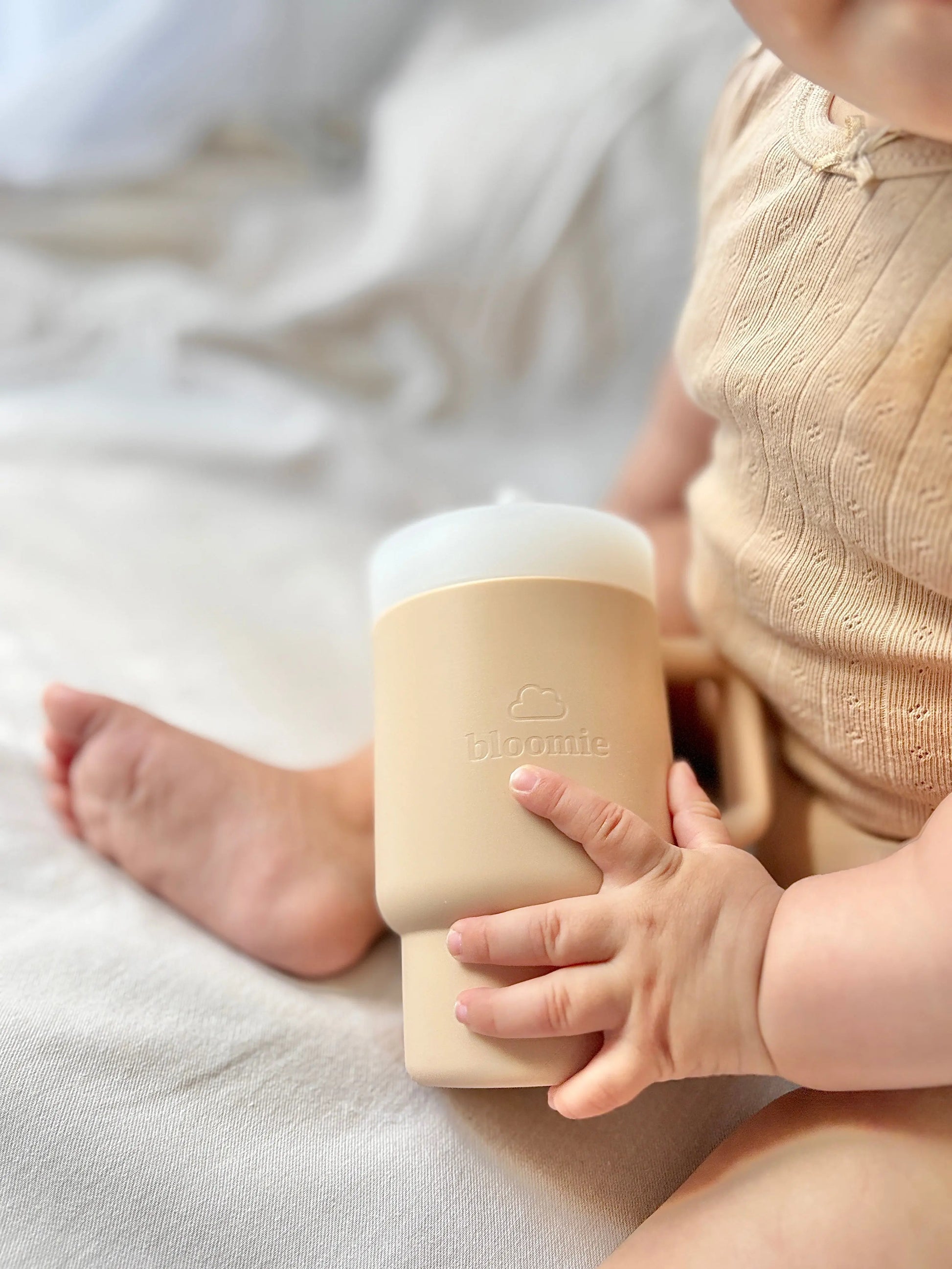 - Tasse d’apprentissage avec paille souple : protège les gencives, transition facile biberon → verre